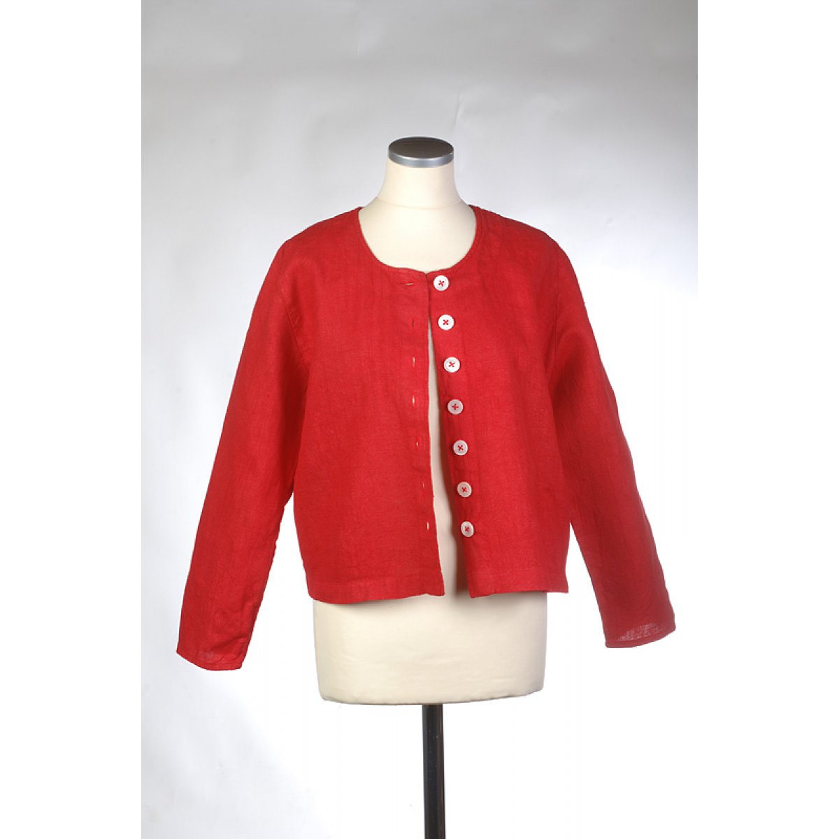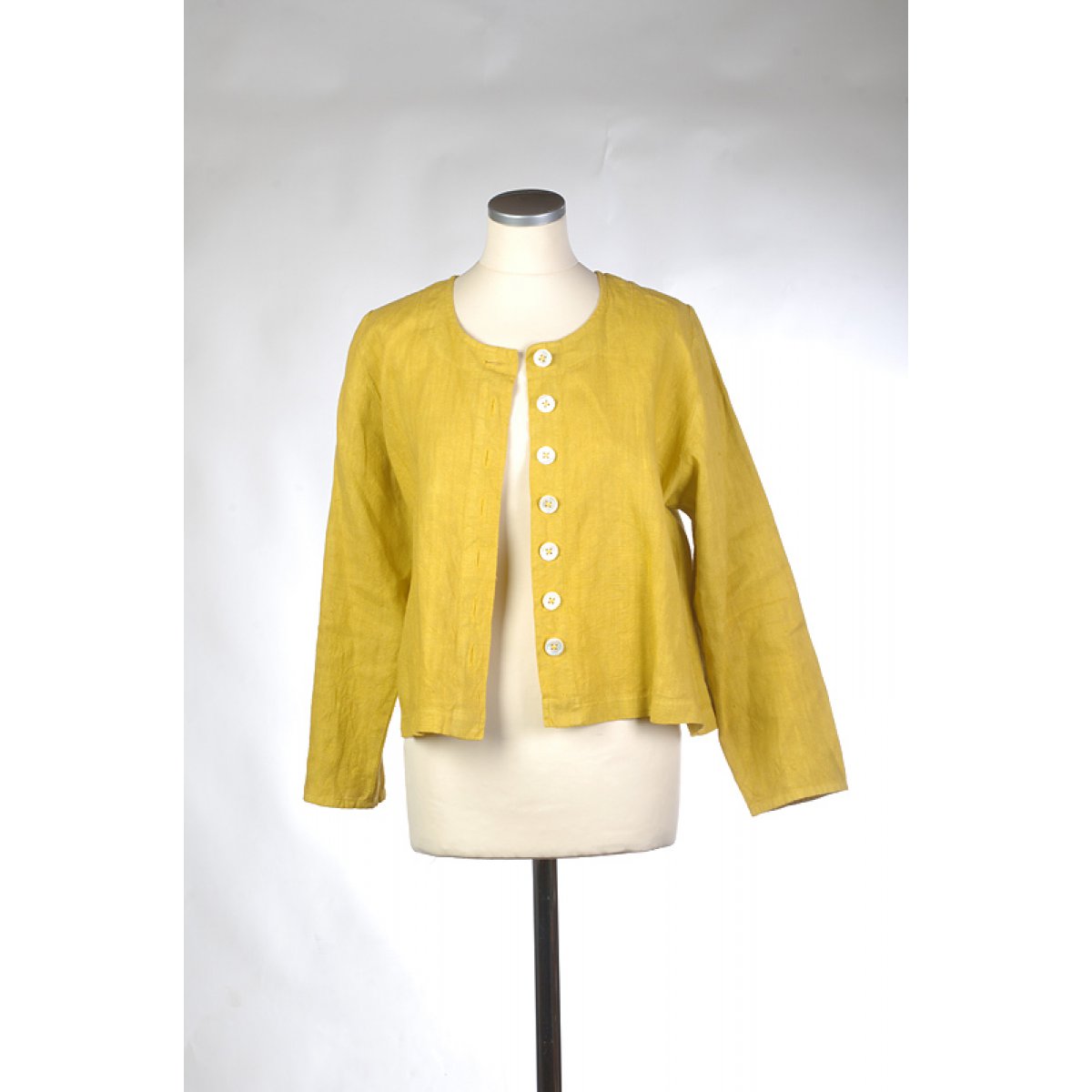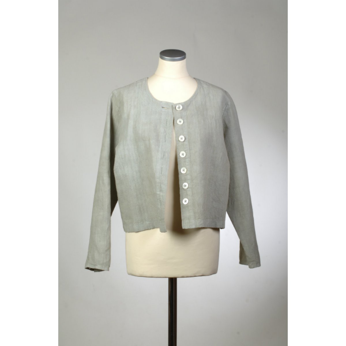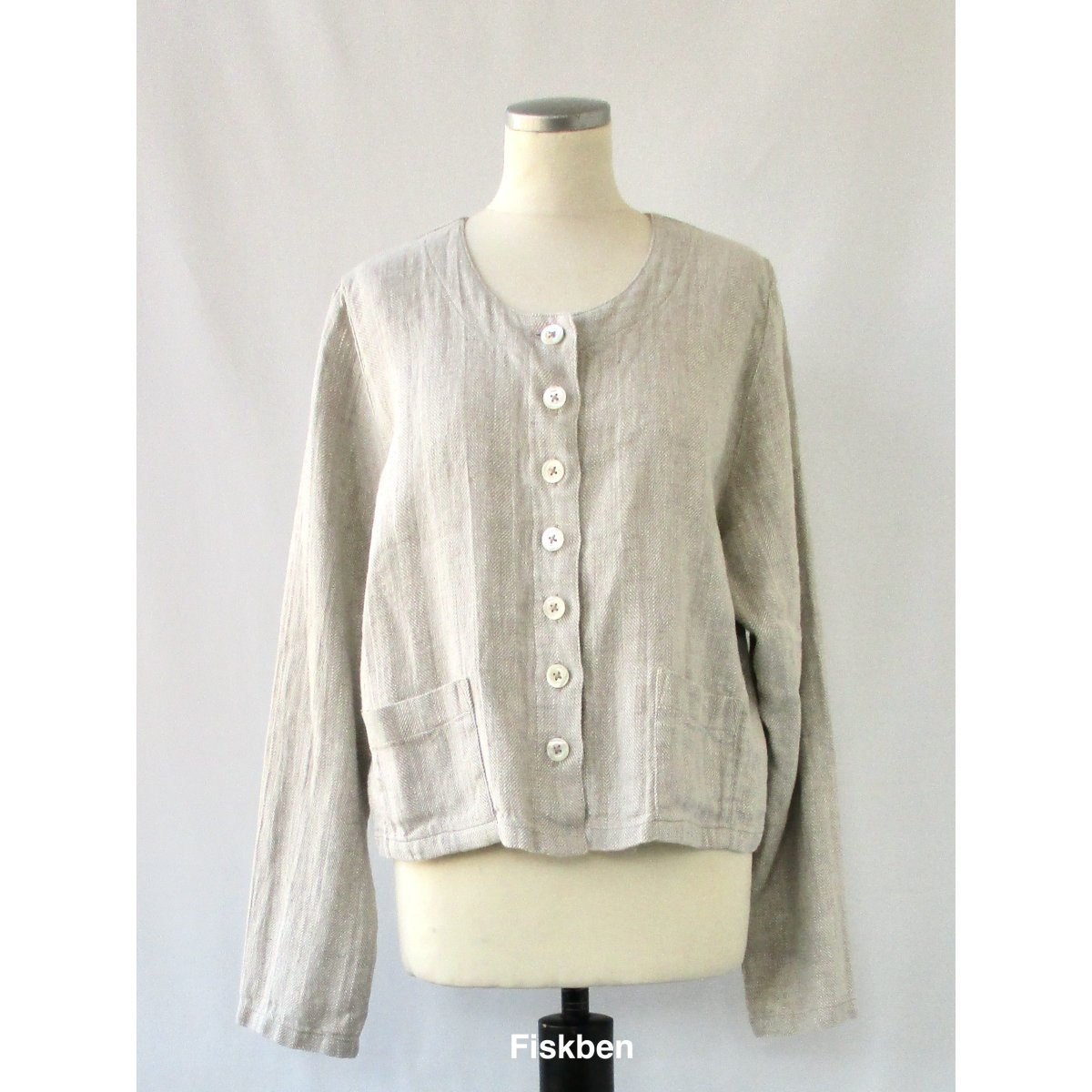 Trevlig kort jacka i kraftigt linne med pärlemorknappar. Nu har vi har lagt till fickor på alla jackor du kan se dem på Fiskben! Modell 6115 och 6114 hör till samma serie men längden skiljer.