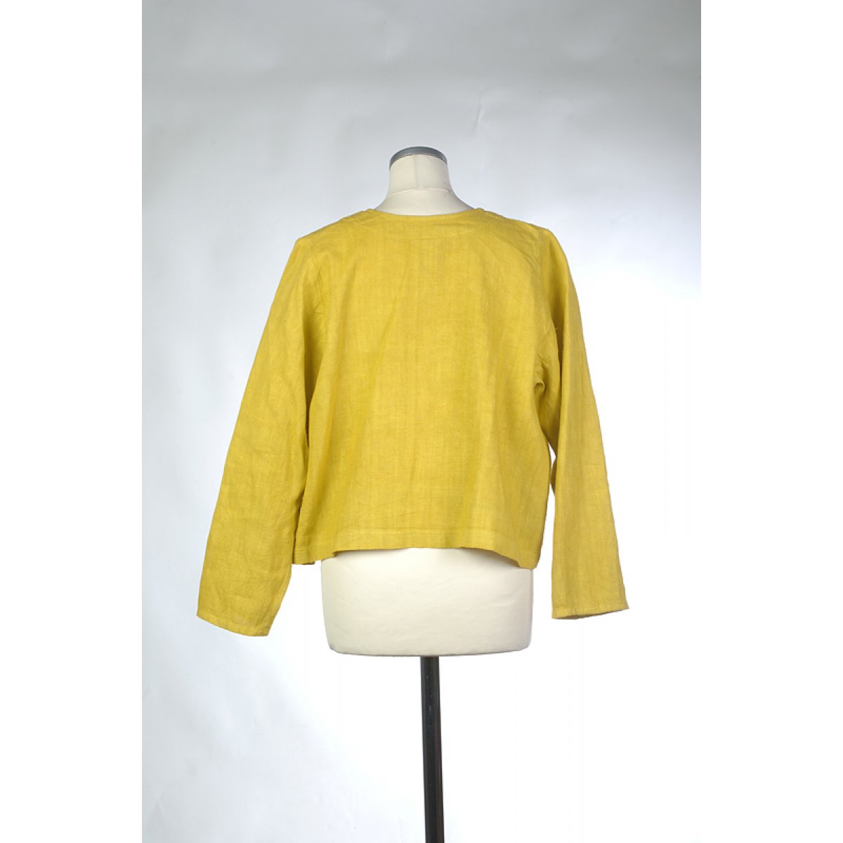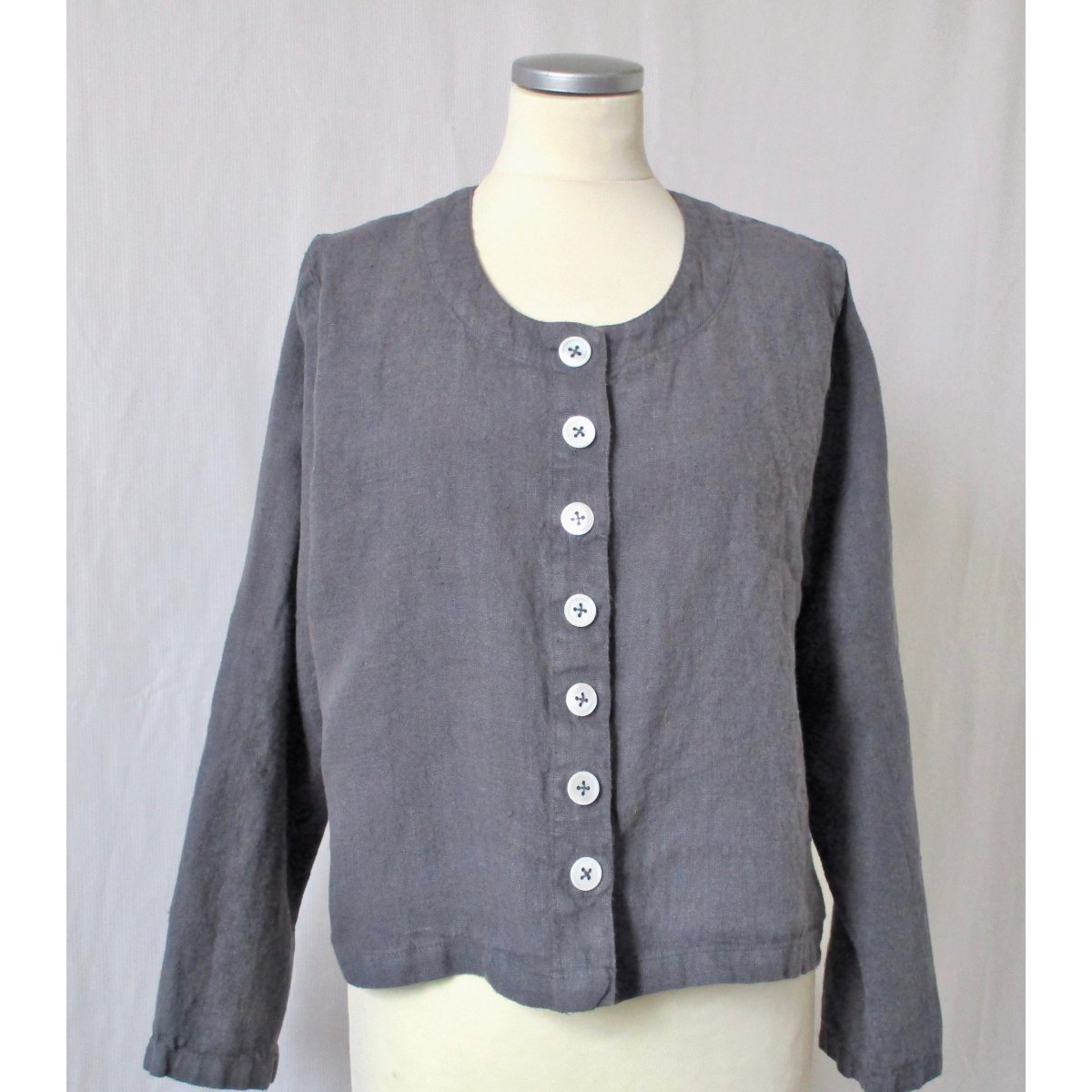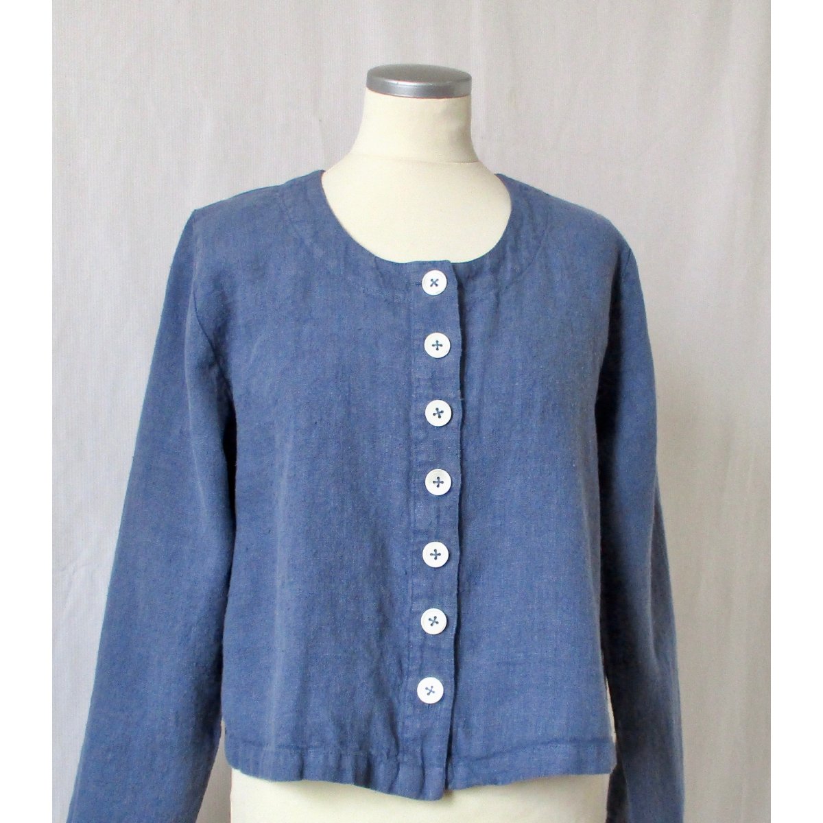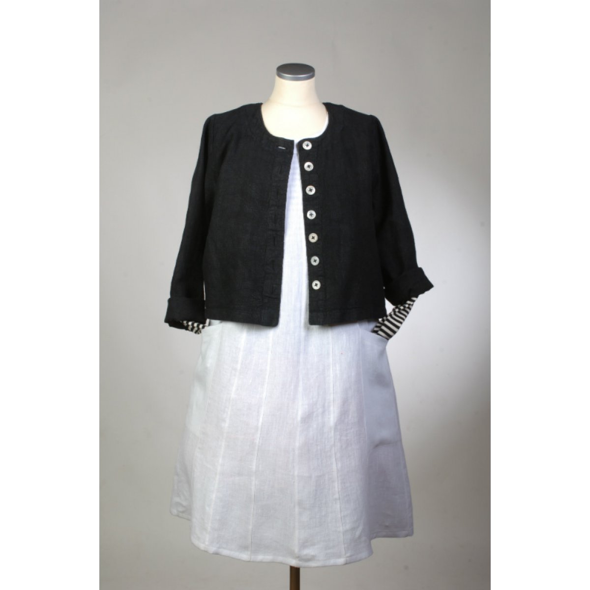 Trevlig kort jacka i kraftigt linne med pärlemorknappar. Nu har vi har lagt till fickor på alla jackor du kan se dem på Fiskben! Modell 6115 och 6114 hör till samma serie men längden skiljer.