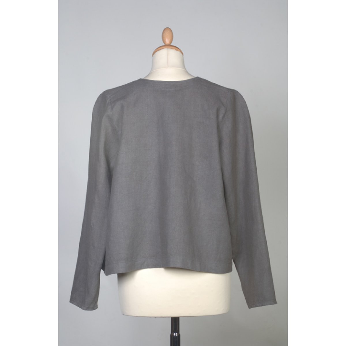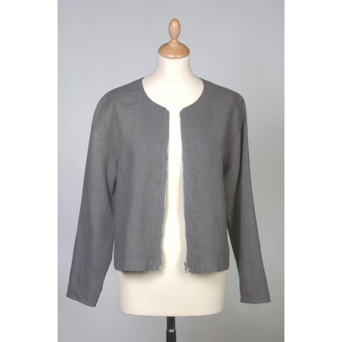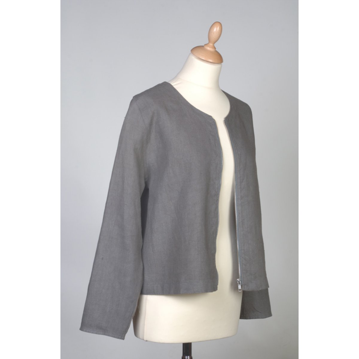 Kort jacka i linne med blixtlås. Finns i storlek 1 och 2.