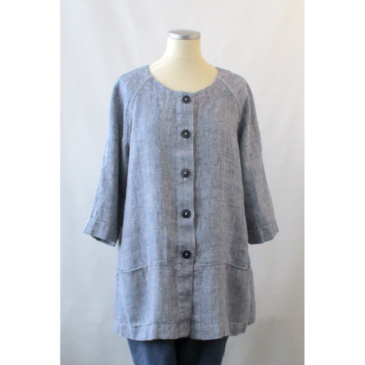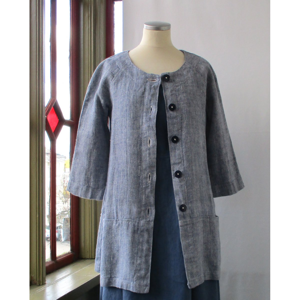 Raglanskuren linnejacka i kypert. Kraftigt linnetyg men ändå mjukt och följsamt. Fickor och trekvartsärm.