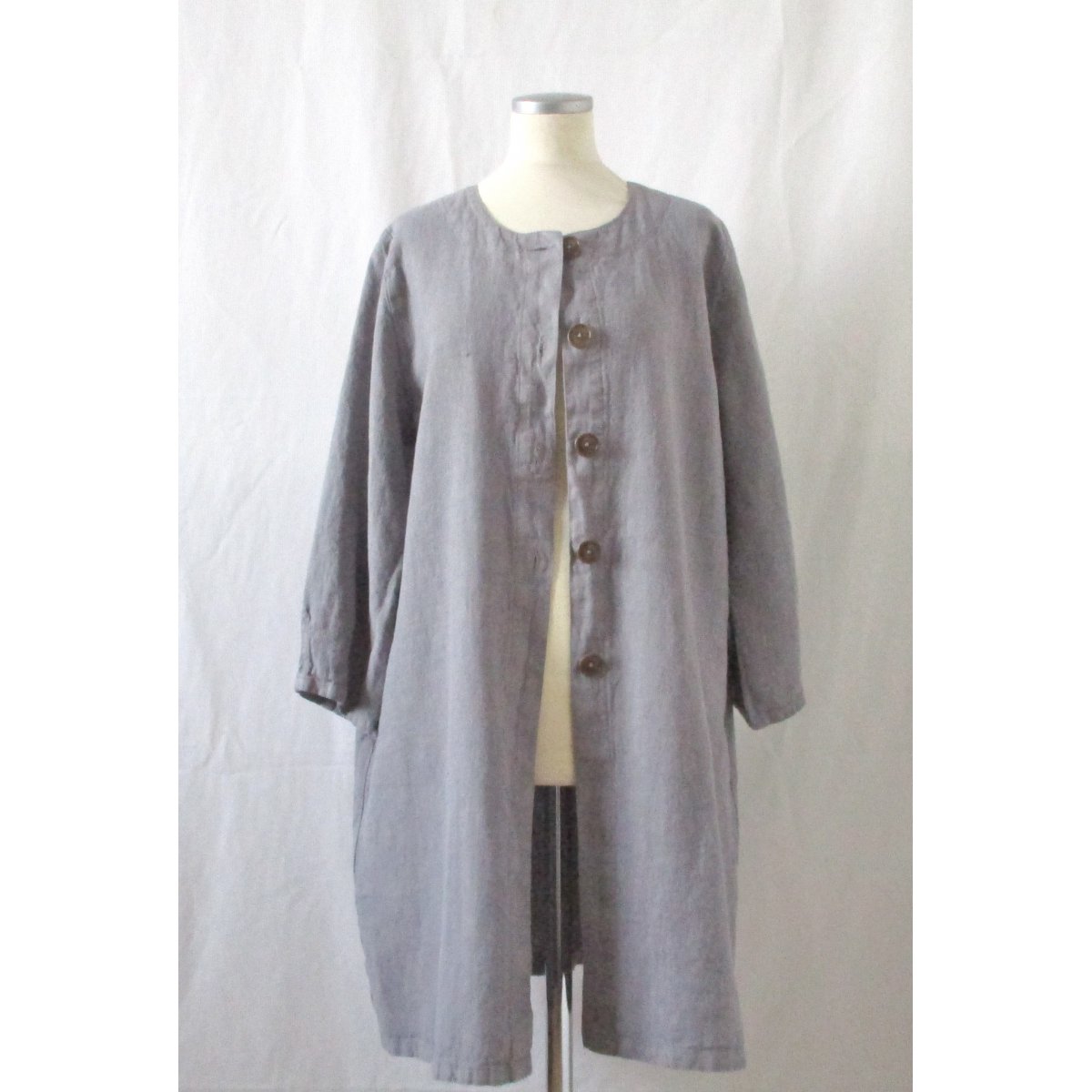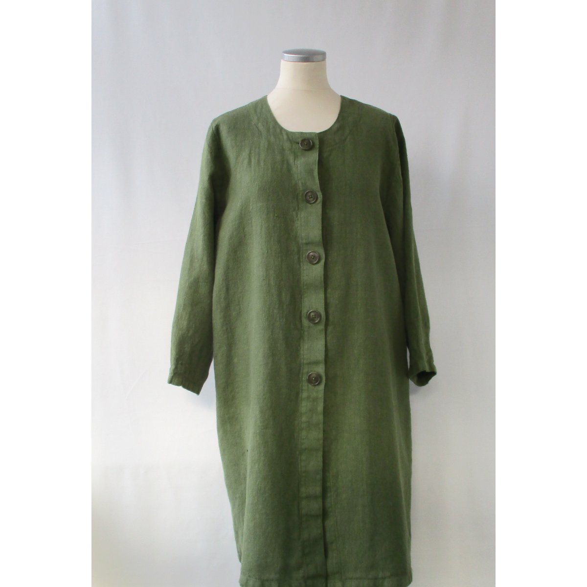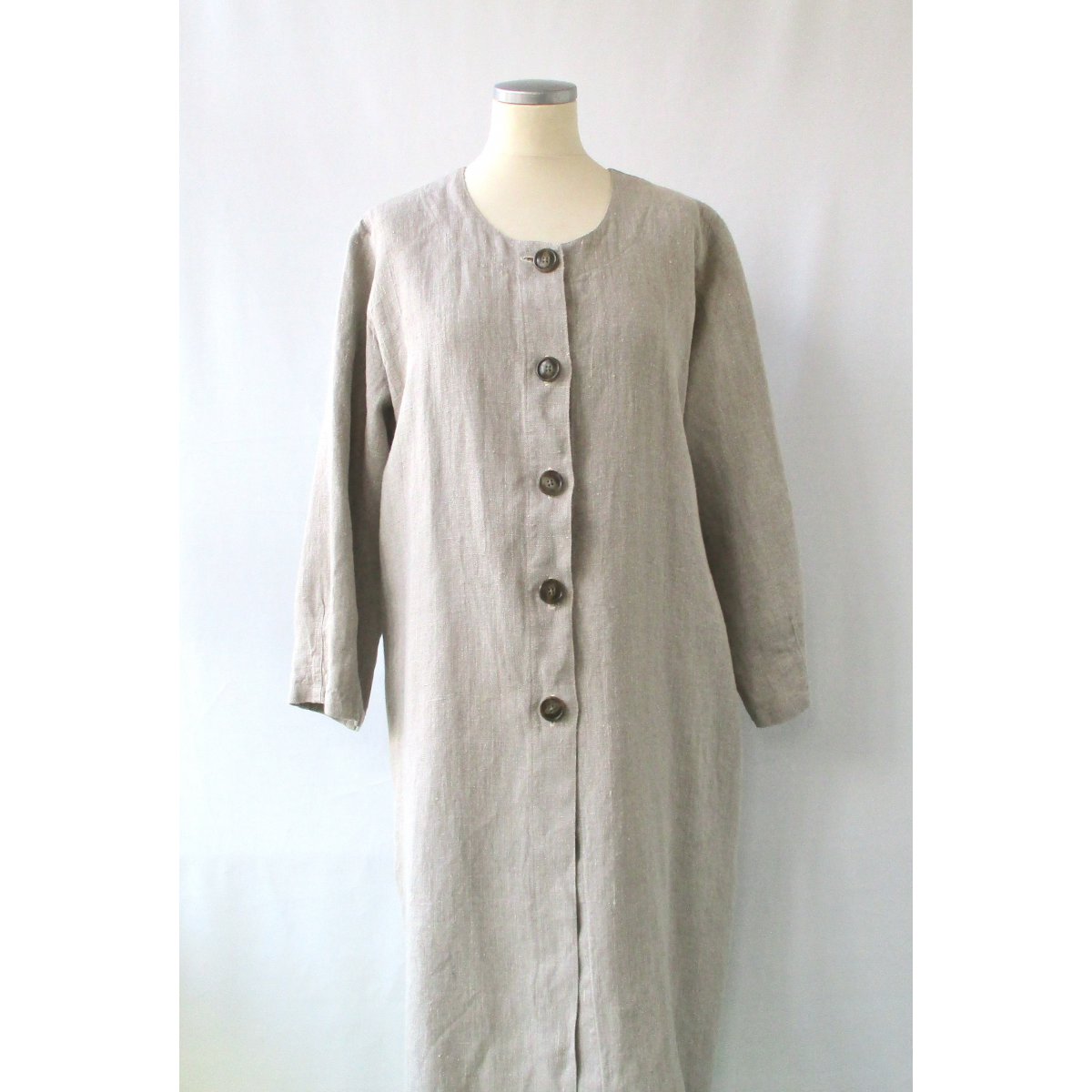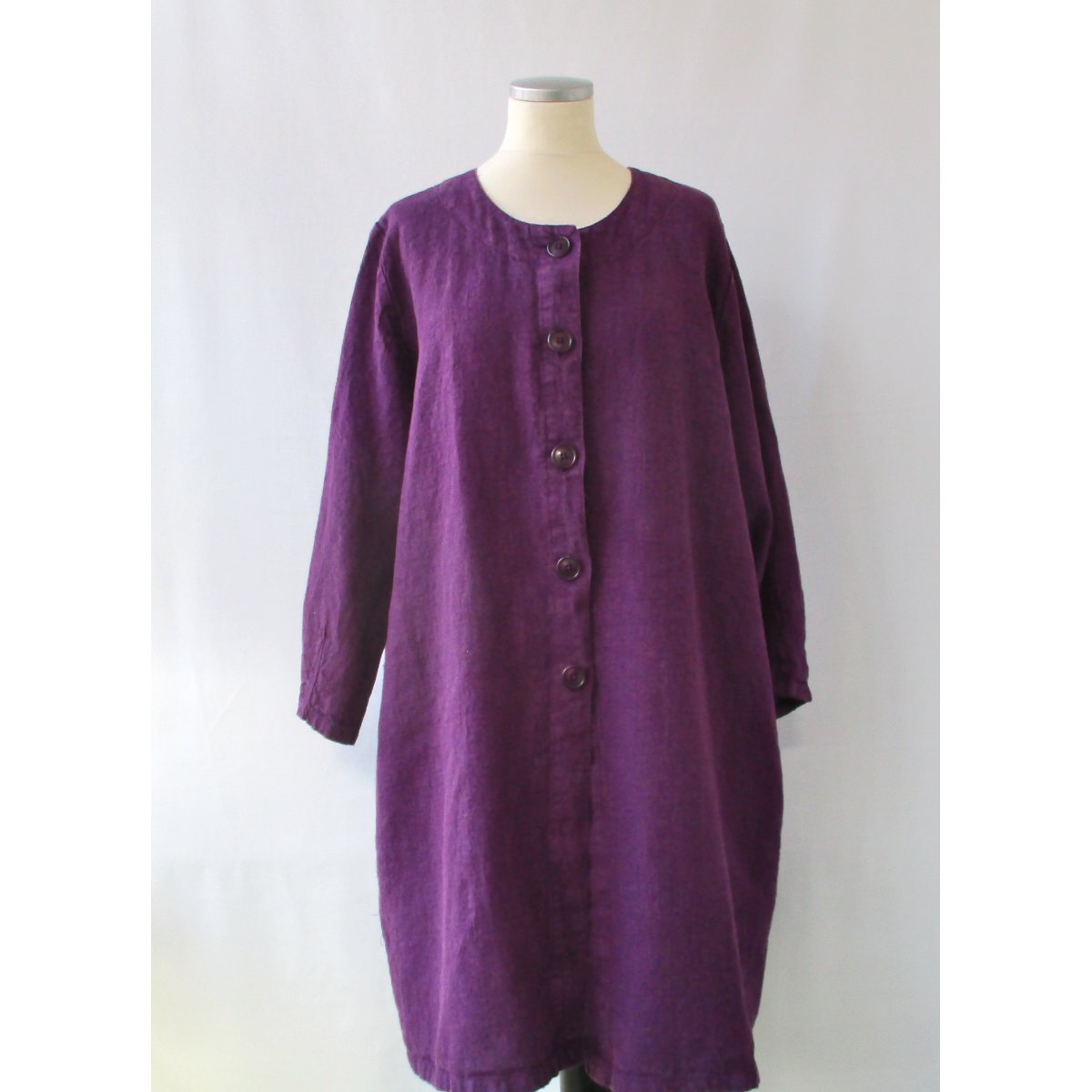 Linnekappa alt. linnerock i A-modell. Knappar och härligt djupa fickor i sidsömmarna. Trekvartsärm som avslutas med sydda insnitt. Tvättad i 60 grader.