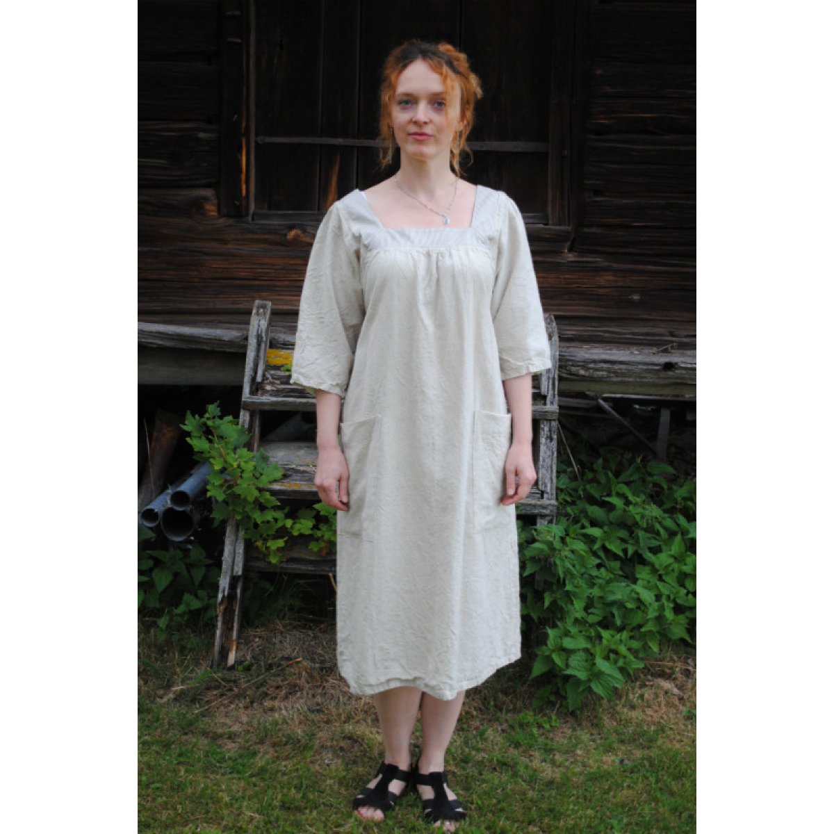 Ledig klänning i lin och viskos med vackert fall. Fickor och band i sidorna.