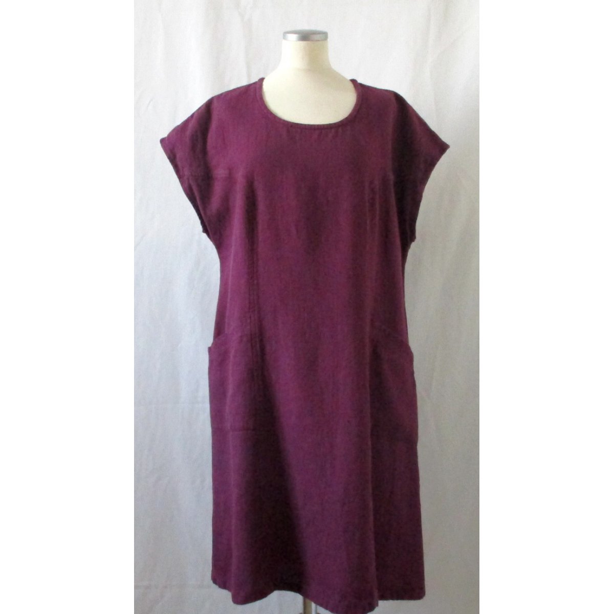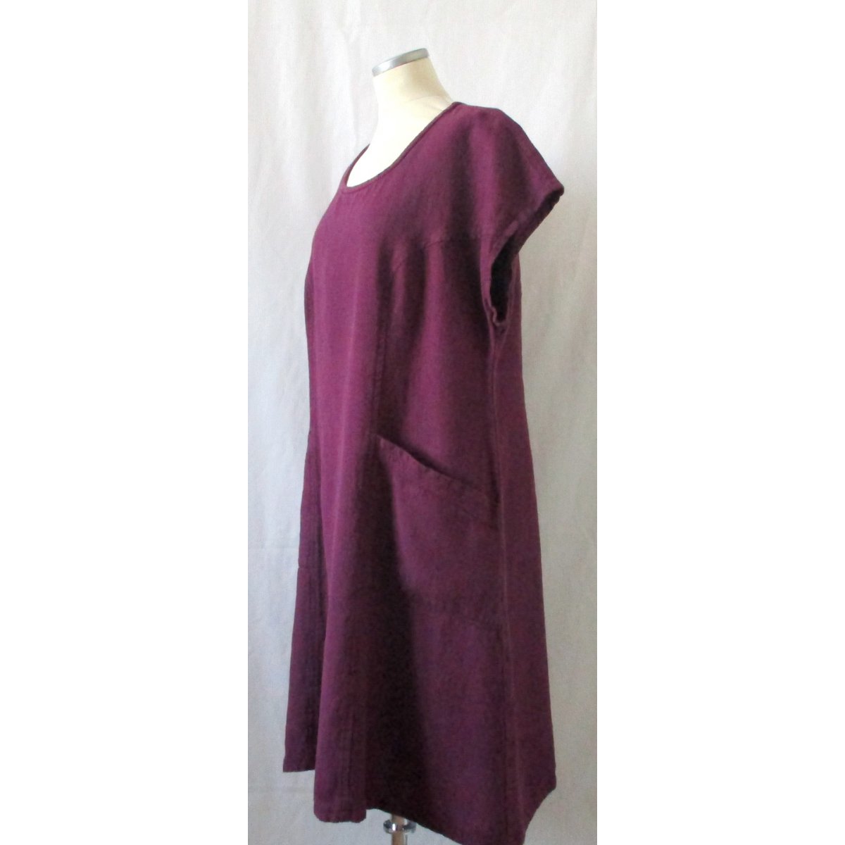 Lite kortare klänning i grovt linne för året runt. Slankande linjer och fickor. Tvättad i 60 grader.