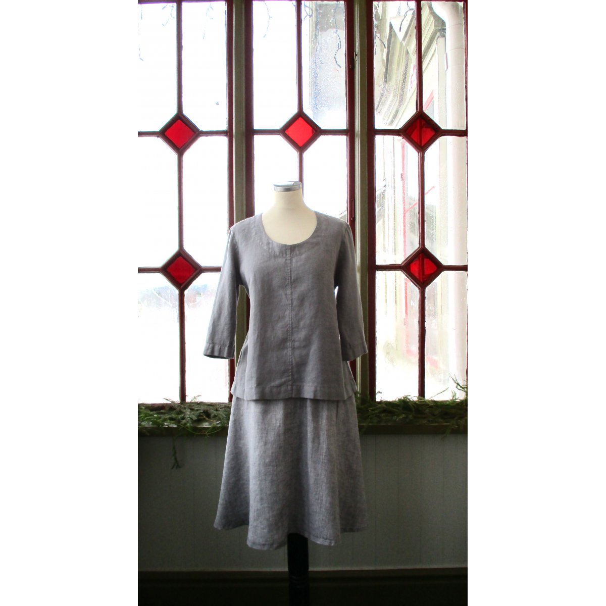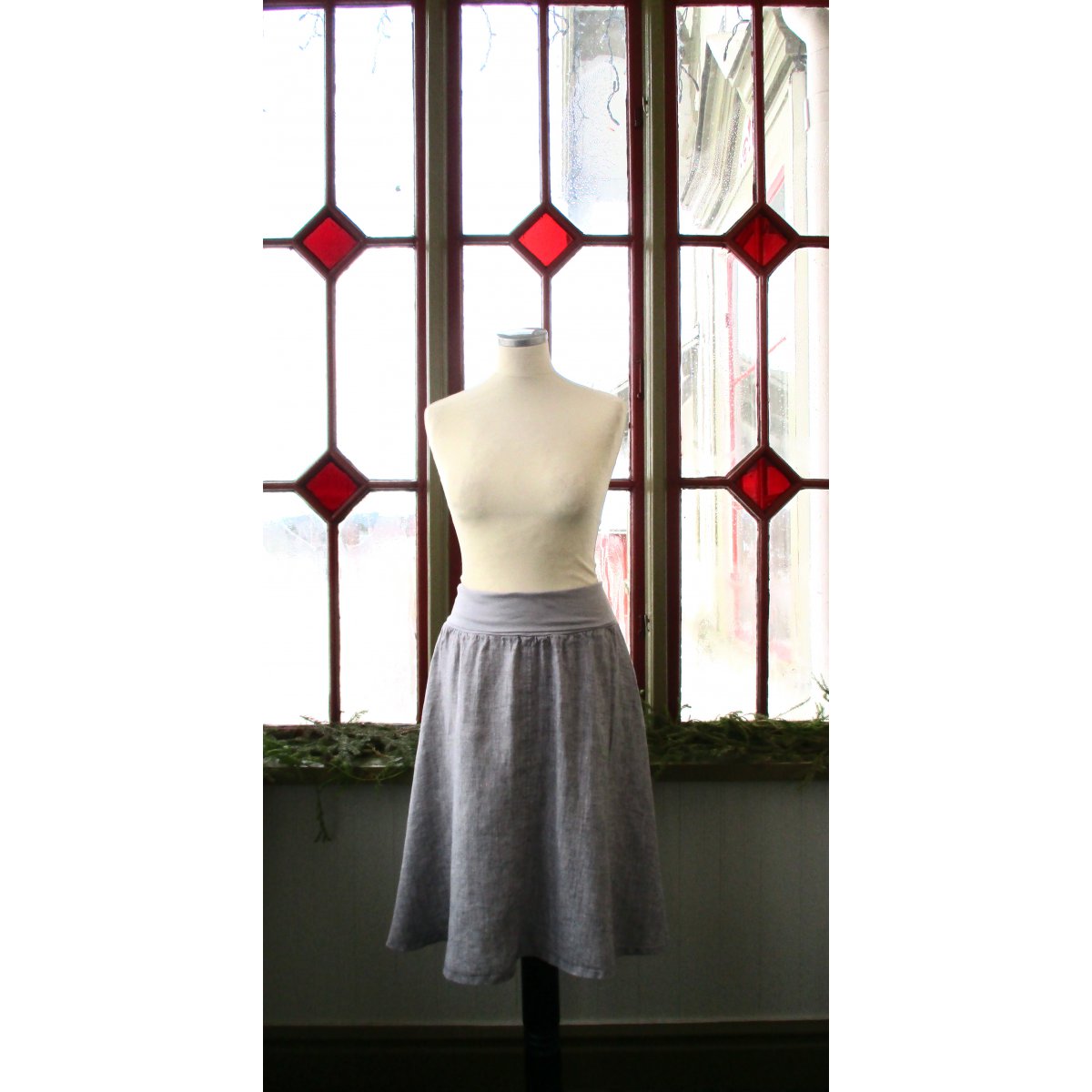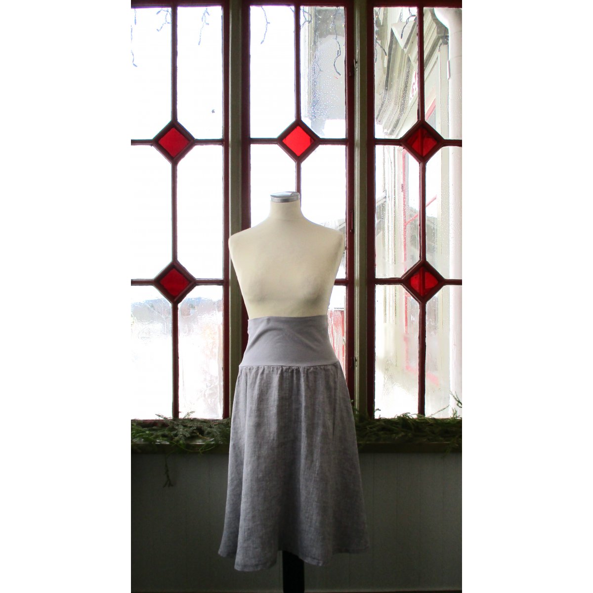 Linnekjol med lagom vidd och snyggt fall, något längre bak.