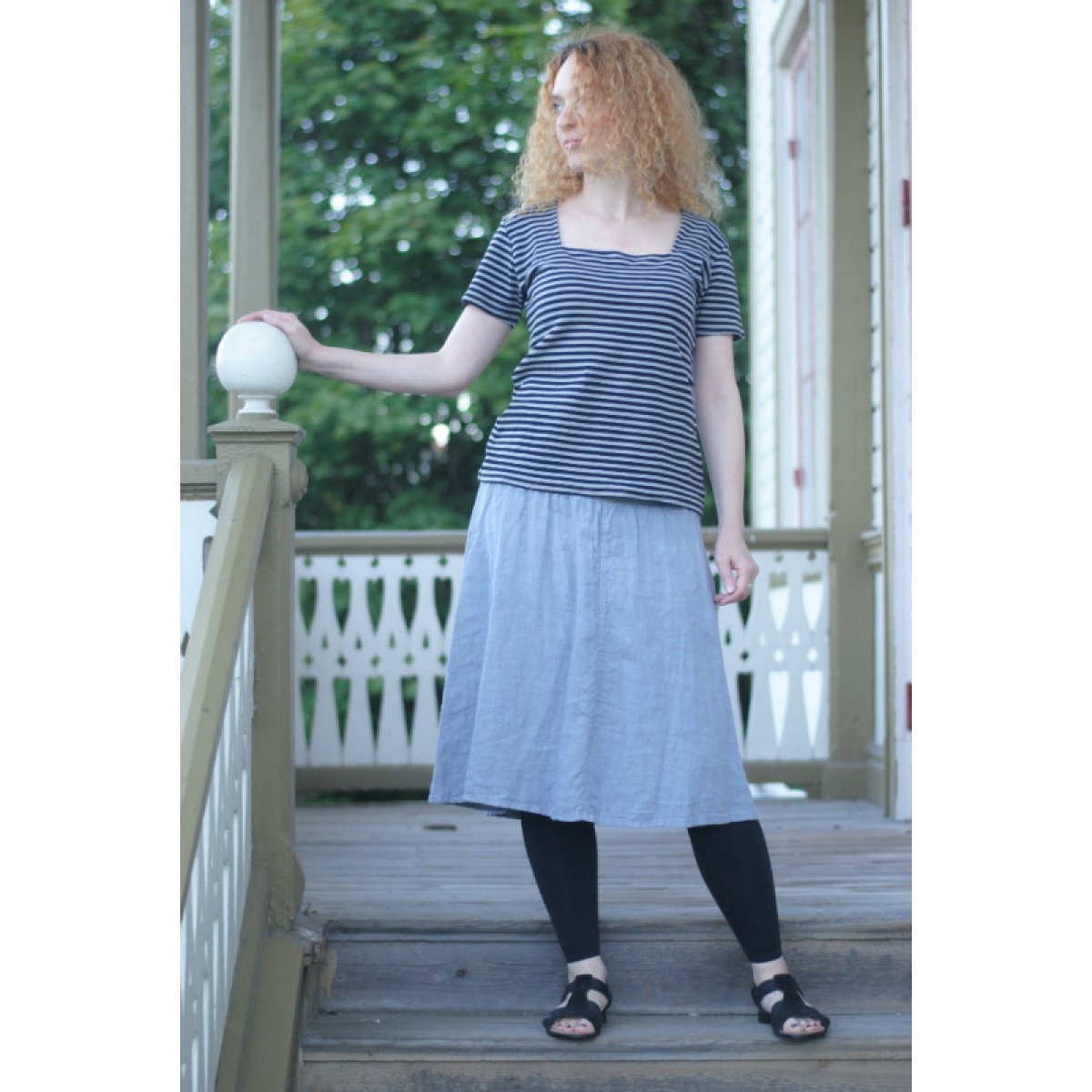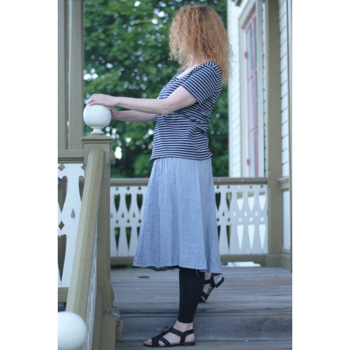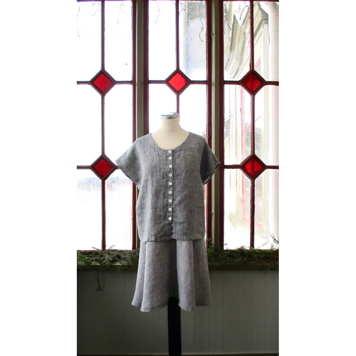 Linnekjol med lagom vidd och snyggt fall, något längre bak.